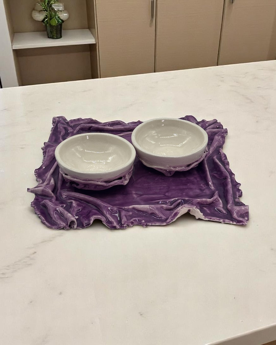 Handmade Ceramic Set - Tray and 2 Dessert Bowls - Handmade in Italy