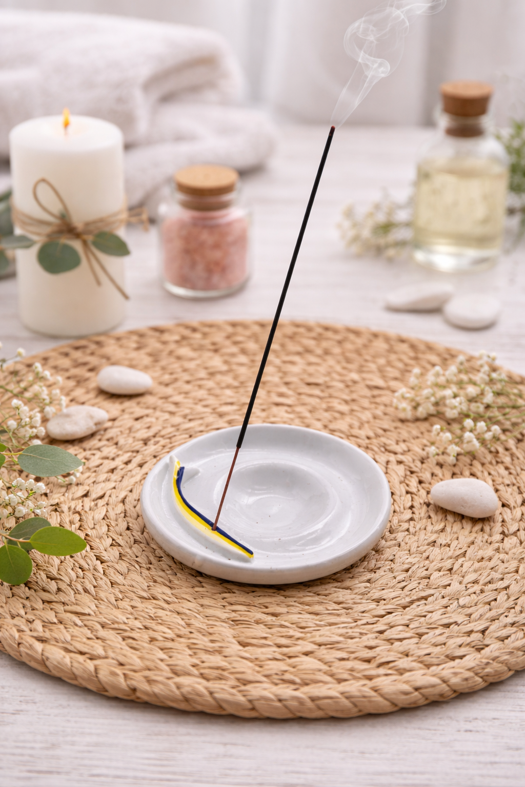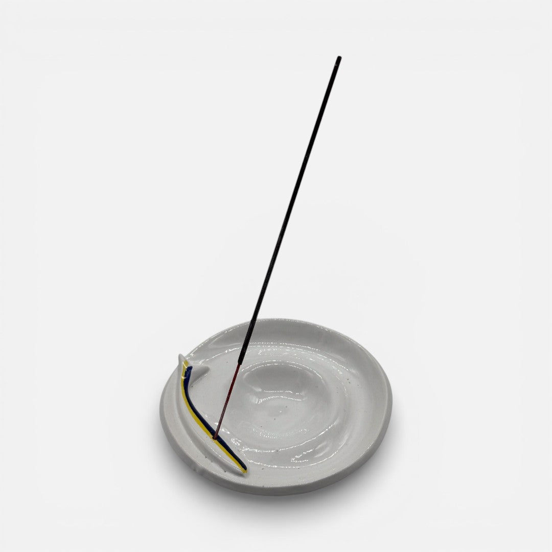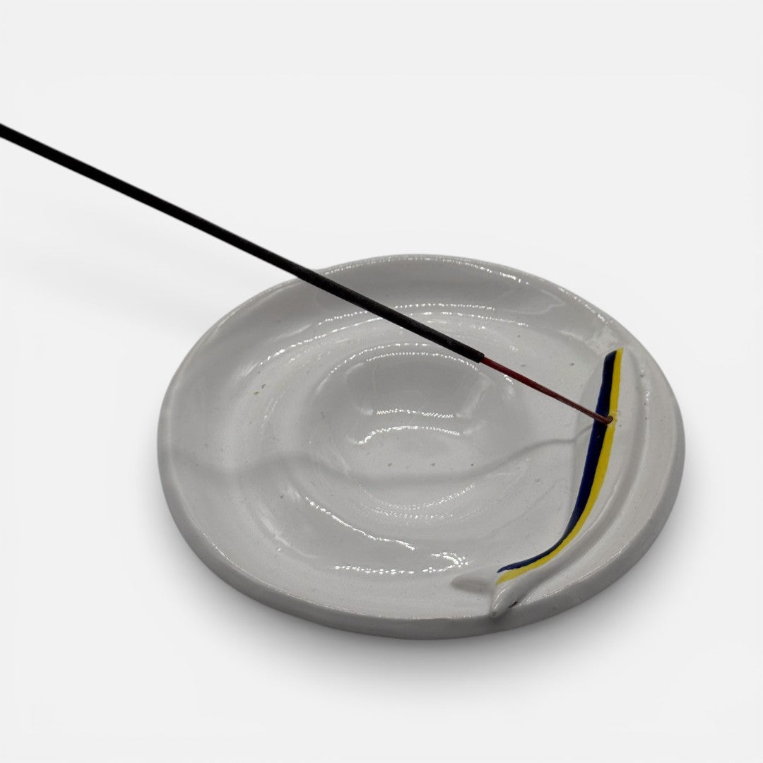 Realizzato in ceramica artigianale, questo brucia incensi unisce estetica e funzionalità, diventando un piccolo complemento d’arredo perfetto per casa, studio o ambienti dedicati al relax.