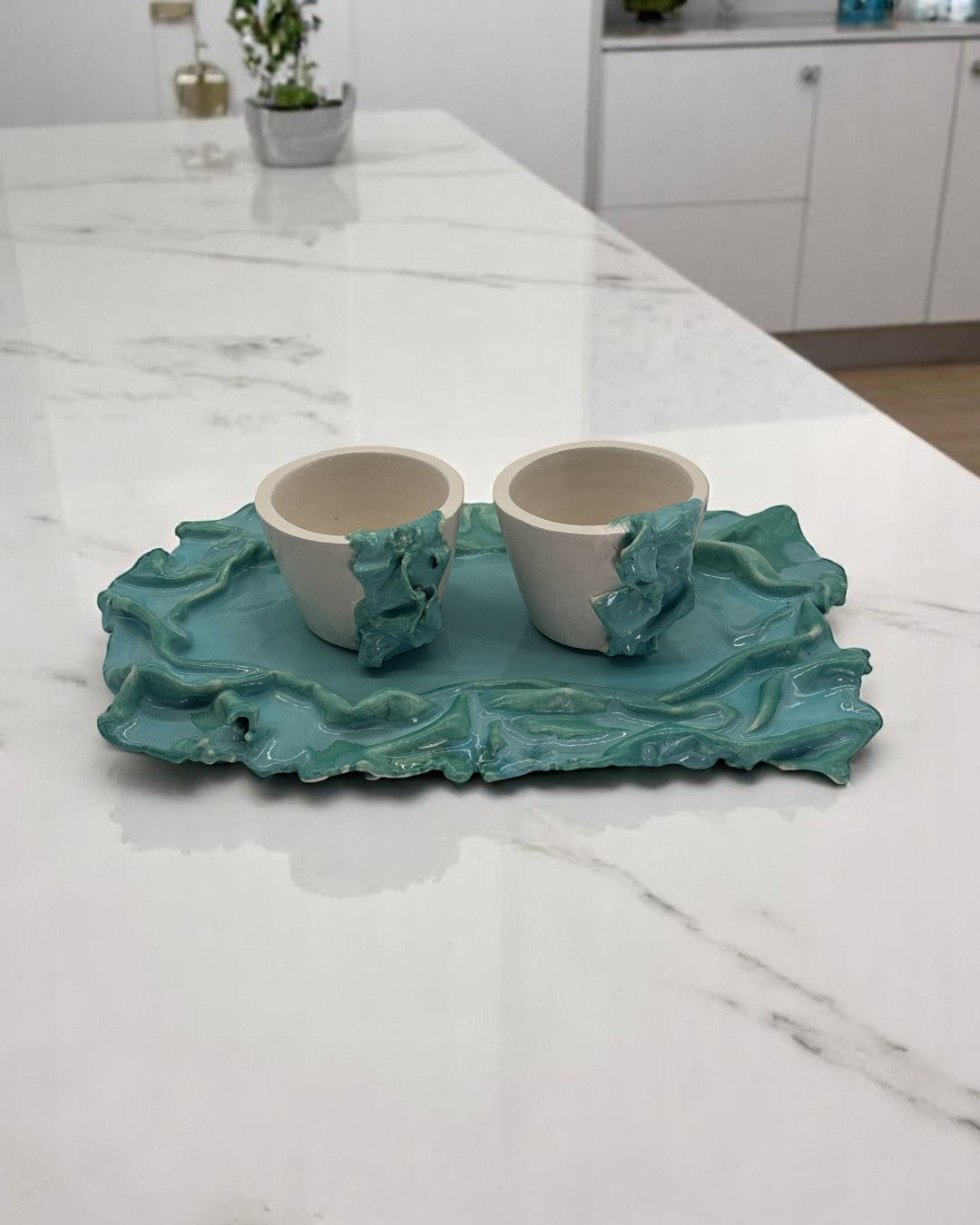 Apportez une touche de fraîcheur et de sophistication à votre table avec notre ensemble de tasses à café en céramique aigue-marine , fabriqué à la main par des artisans experts. Cet ensemble exclusif comprend un élégant plateau et deux tasses , parfaits pour servir votre café ou thé préféré, avec un design unique et raffiné.