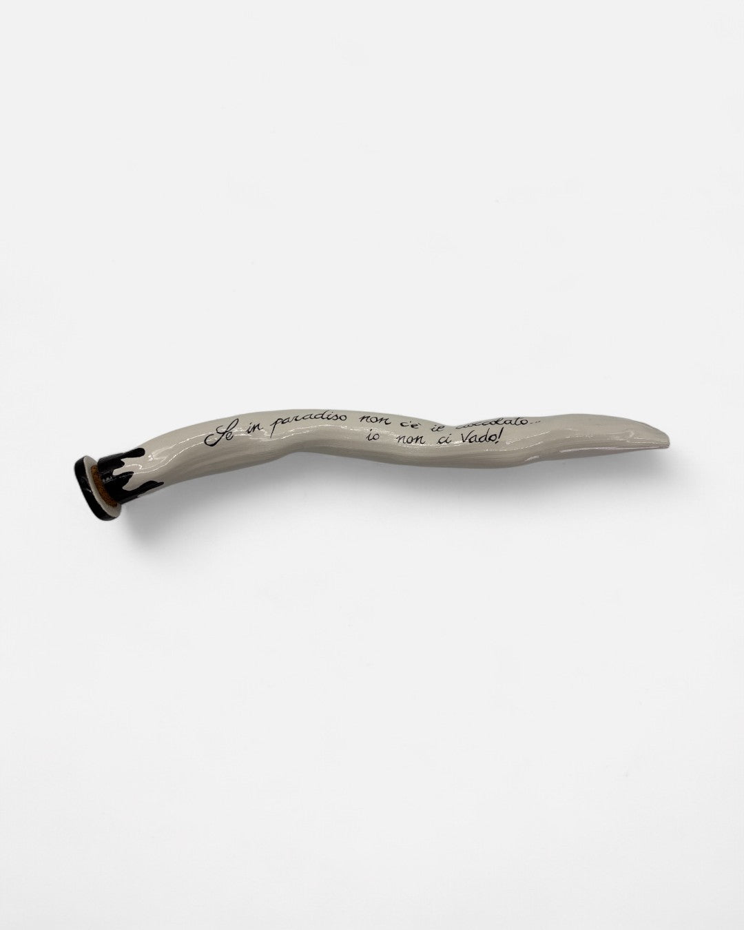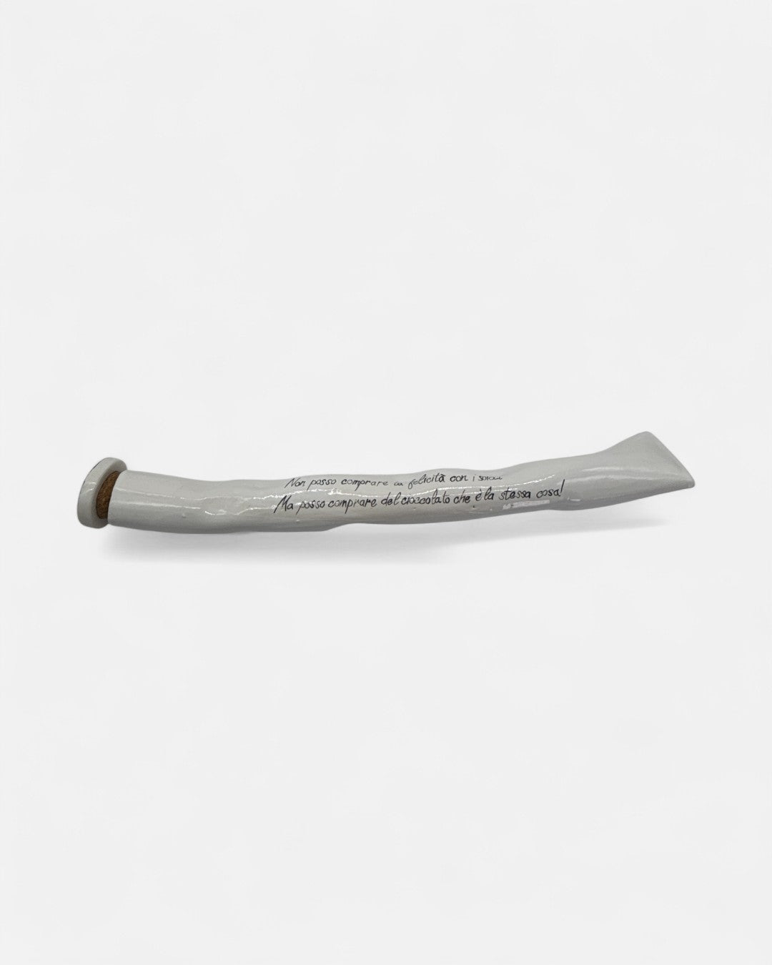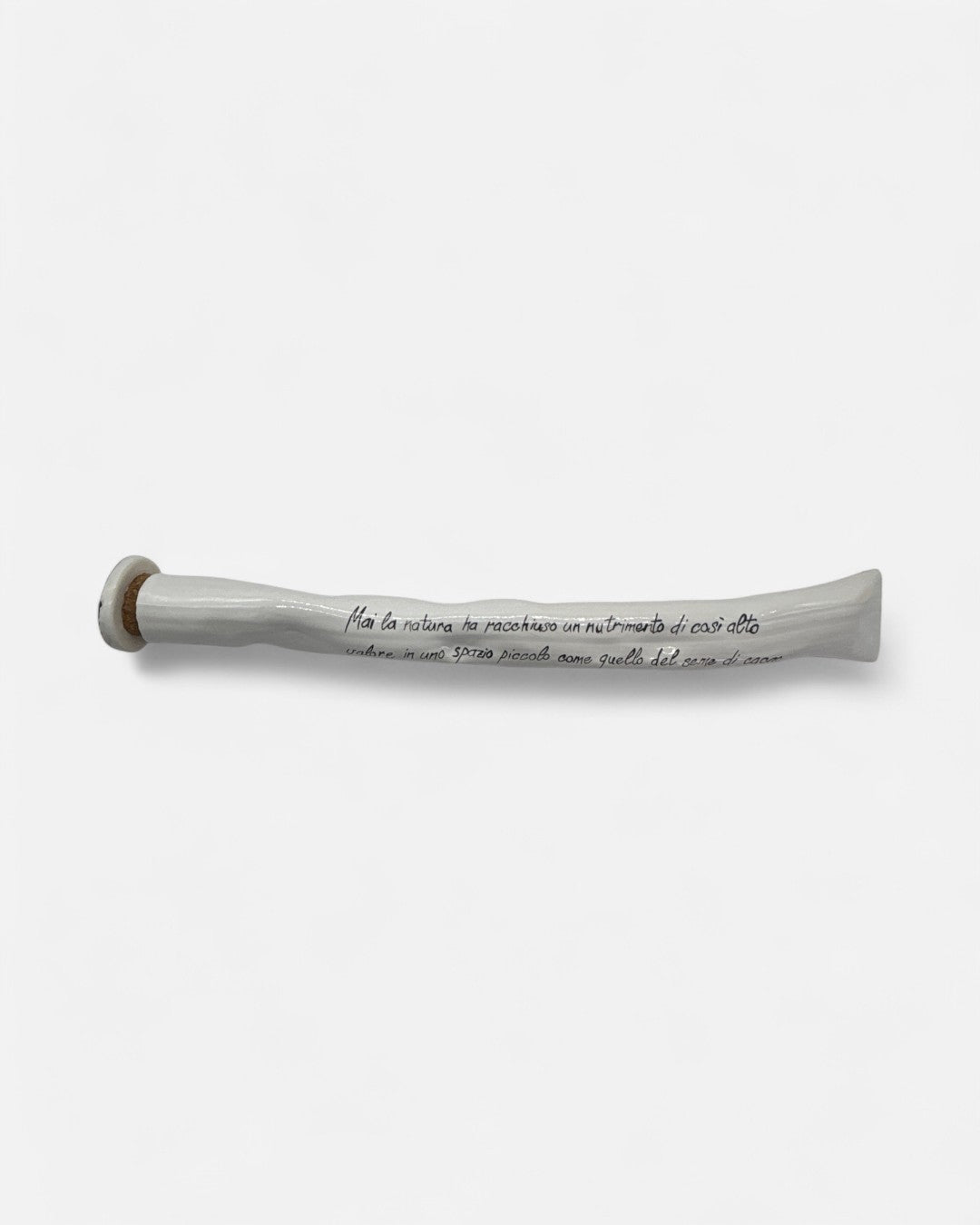 Il tubo A41 è un contenitore in ceramica realizzato a mano, pensato per accogliere praline, cioccolatini o piccoli dolci con stile e originalità. La sua forma allungata e il design pulito lo rendono perfetto per essere utilizzato come elemento da tavola nelle occasioni speciali o come raffinata idea regalo.