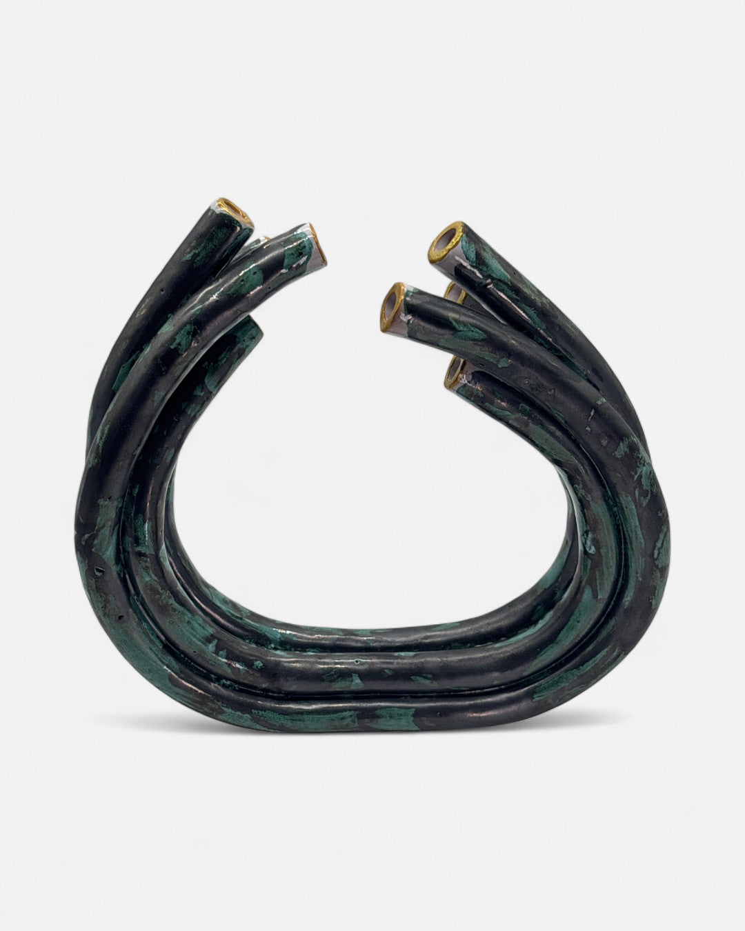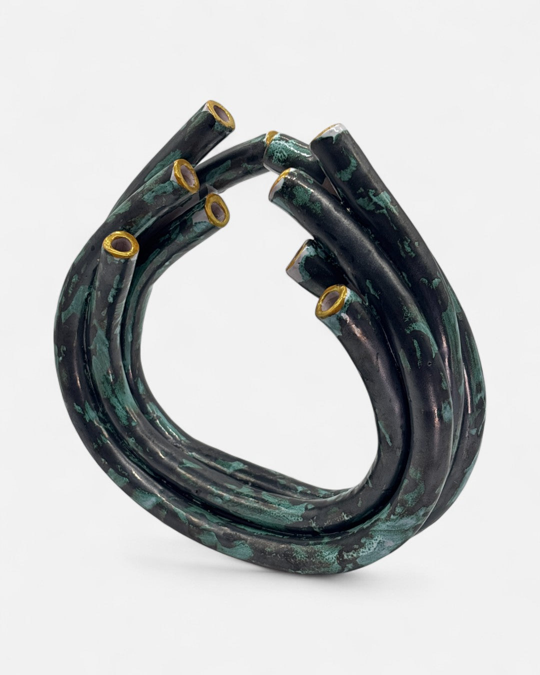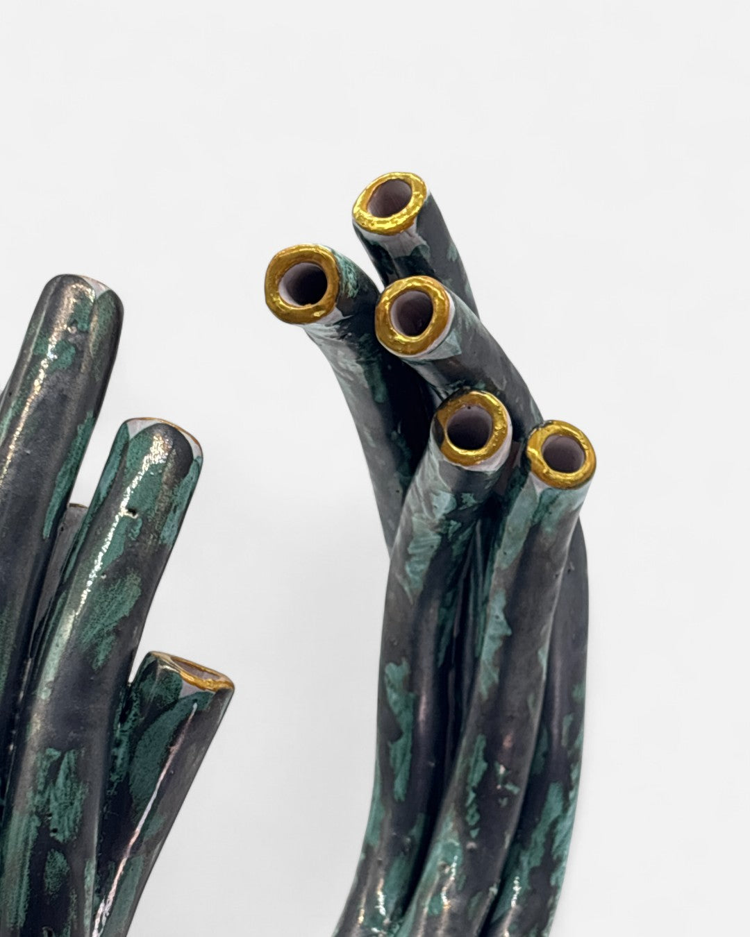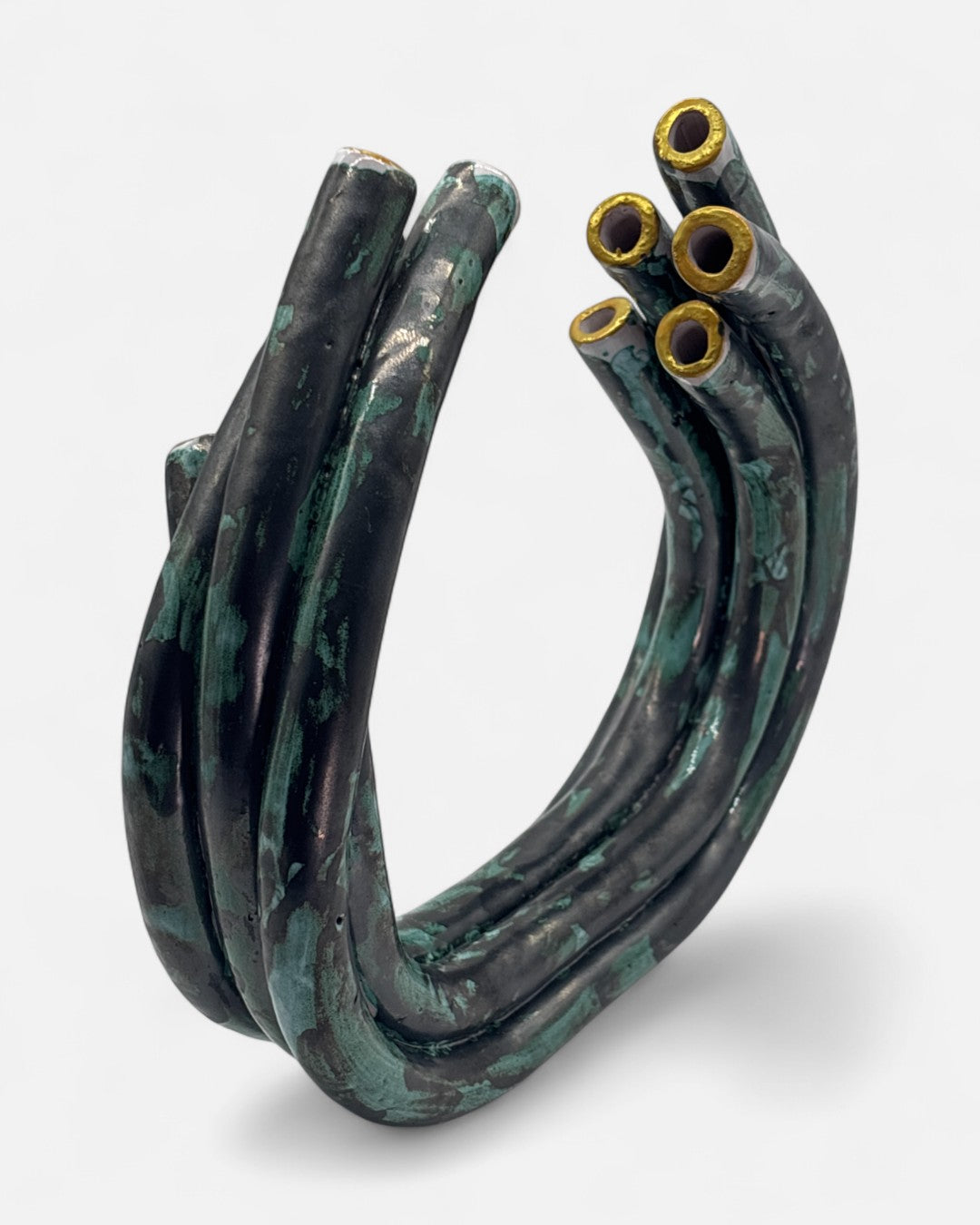 Vaso da Fiori in Ceramica Ramina/Oro - A26 | Lavorazione Artigianale e Finitura Dorata