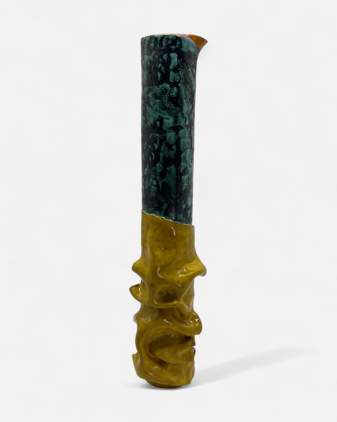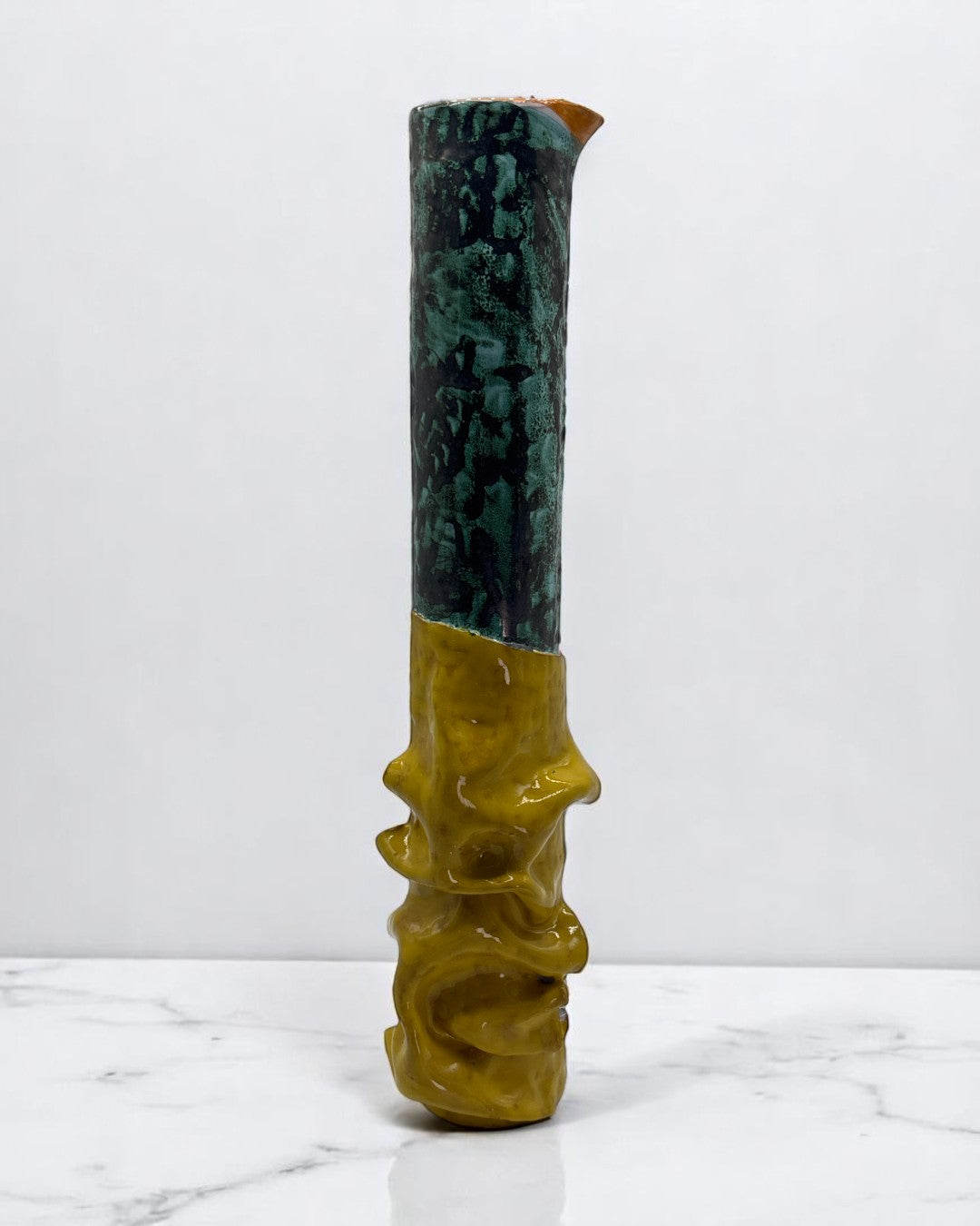 Il vaso A32 è un elegante complemento d’arredo realizzato a mano, caratterizzato da una combinazione di colori caldi ramina e giallo. La sua forma tubolare, alta e slanciata, lo rende perfetto per ospitare fiori freschi o secchi, portando un tocco di colore e stile a ogni ambiente.