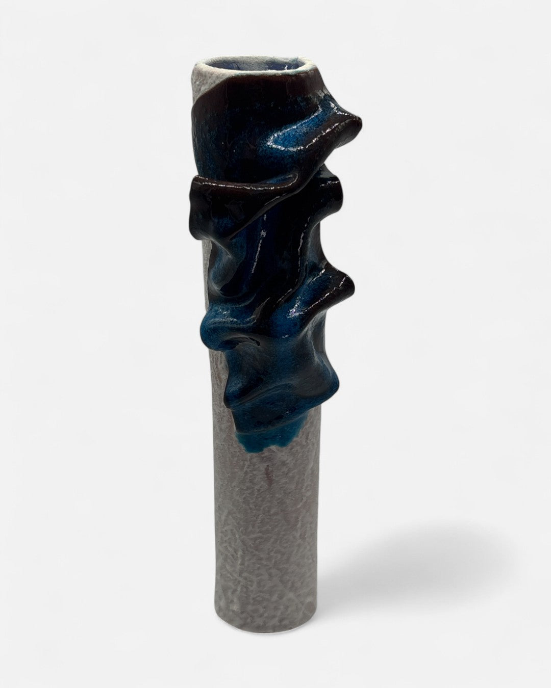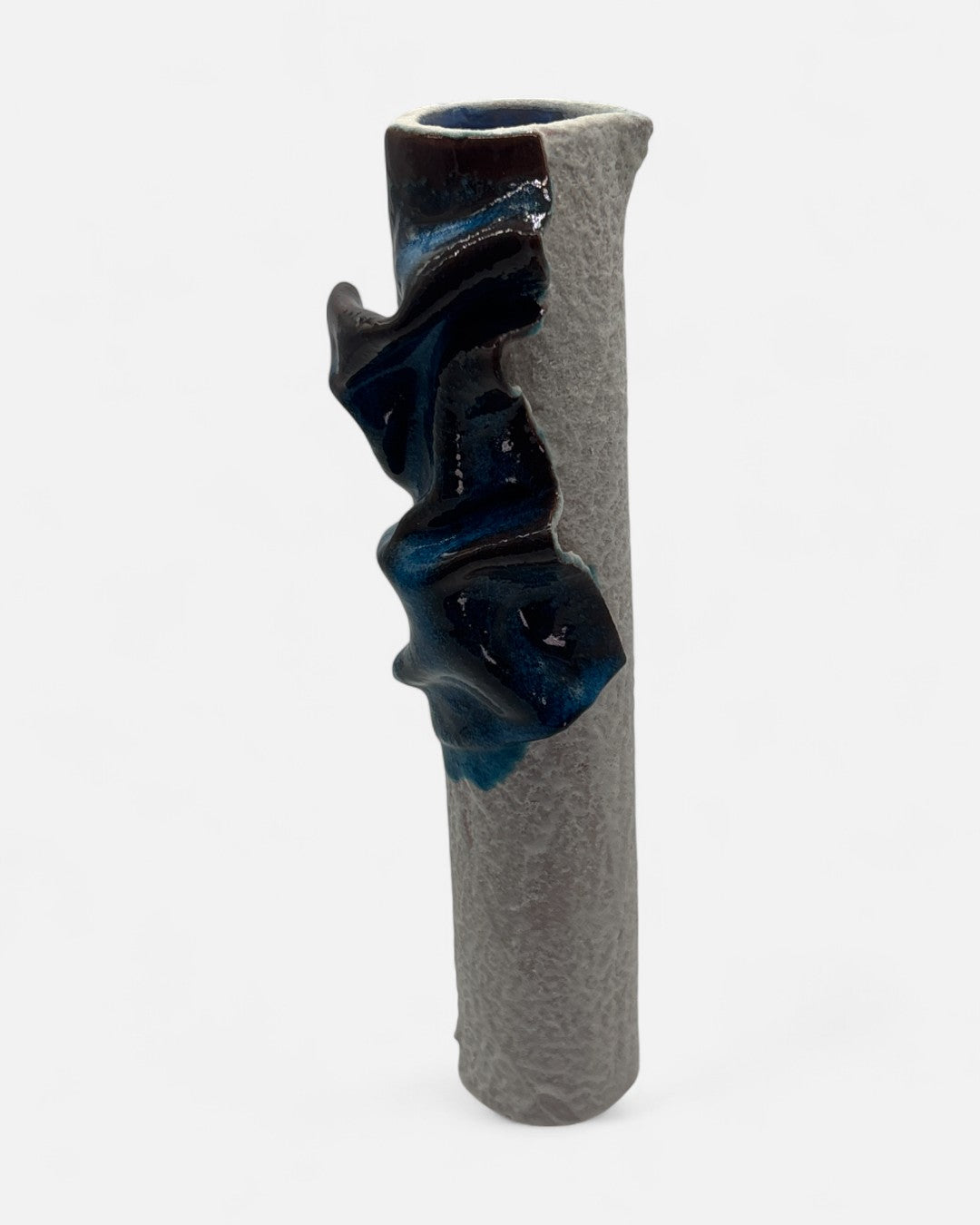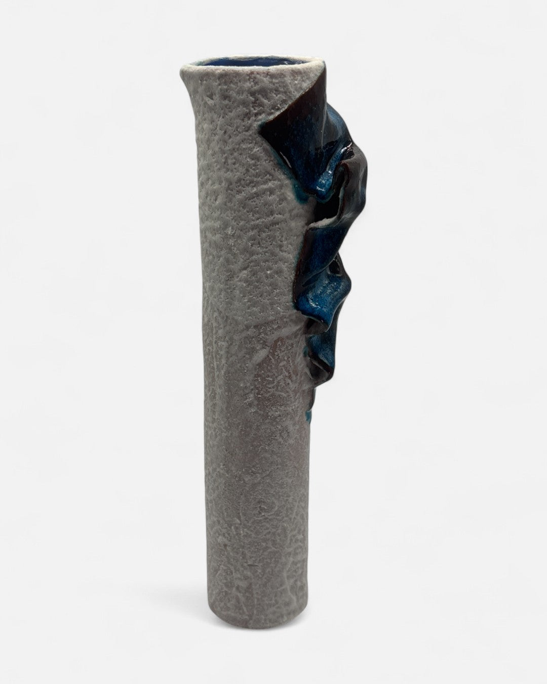 Dal design essenziale e slanciato, il vaso A31 è un raffinato oggetto in ceramica lavorato a mano, caratterizzato da una superficie vetrosa in tonalità turchese che cattura la luce e valorizza ogni dettaglio. La sua forma tubolare lo rende ideale per composizioni monofiore o piccoli rami decorativi.